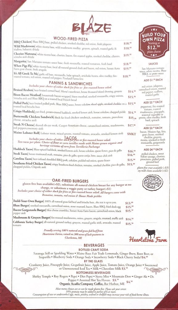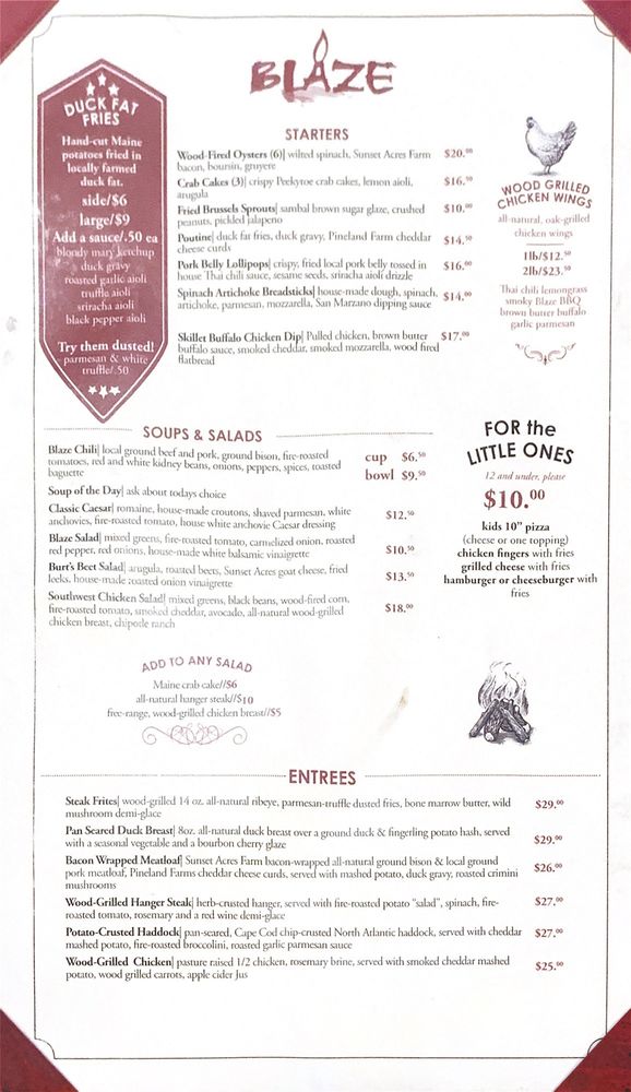 Blaze, located at 18 Broad St Bangor, ME 04401, offers a trendy and casual dining experience with a diverse menu. Customers rave about their wood-fired pizza, pork lollipops, and poutine with duck fat fries. The ambiance is described as nice and romantic, making it a popular spot for Friday or Saturday nights. The full bar serves good drinks and wine, enhancing the overall experience. With wheelchair accessibility, free Wi-Fi, and a gender-neutral restroom, Blaze caters to a diverse crowd. If you're in Bangor, don't miss out on the delicious food and great service at Blaze.